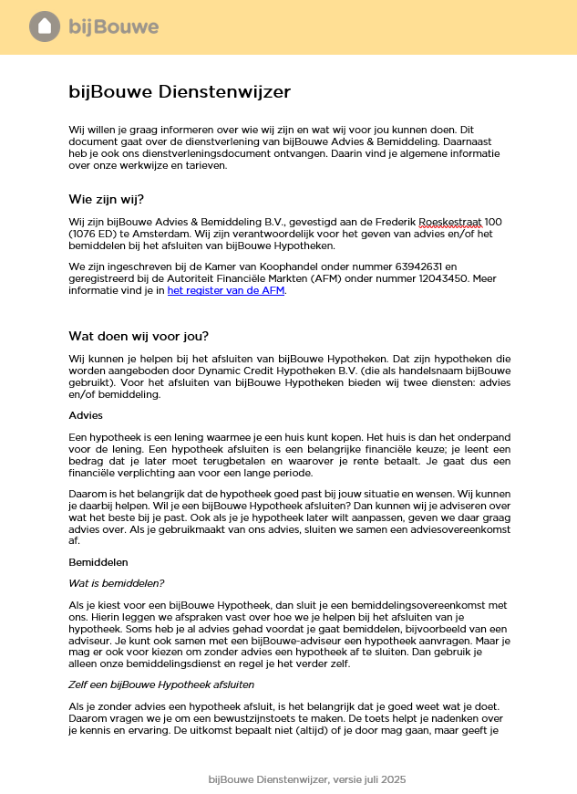 Heb je een vraag of mis je iets? Stuur ons gerust een bericht via marketing@bijbouwe.nl.
